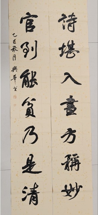 作品簡介:上聯“家和萬事興”,道出家庭和睦乃事業昌隆之基石,是傳承千載的治家智慧;下聯“人廉一生安”,則深刻揭示了清廉正直是個人安身立命、心境坦然的根本。兩者并行,由內至外,共同構筑了圓滿人生的崇高境界,是一份對美好生活的祝愿和修身齊家的格言,寓意著清廉自律方能帶來內心長久的安寧與家庭的興旺。