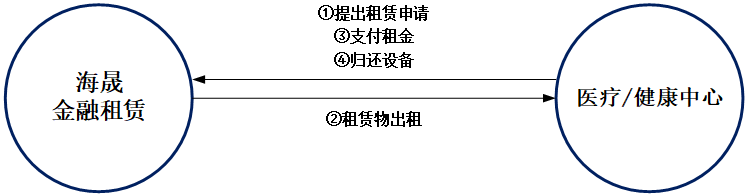 ②售后回租:醫院/健康中心將自有醫療器械出售給海晟金租,再從海晟金租租回使用并按期支付租金。租賃期滿,醫院/健康中心以較低名義貨價回購醫療器械。